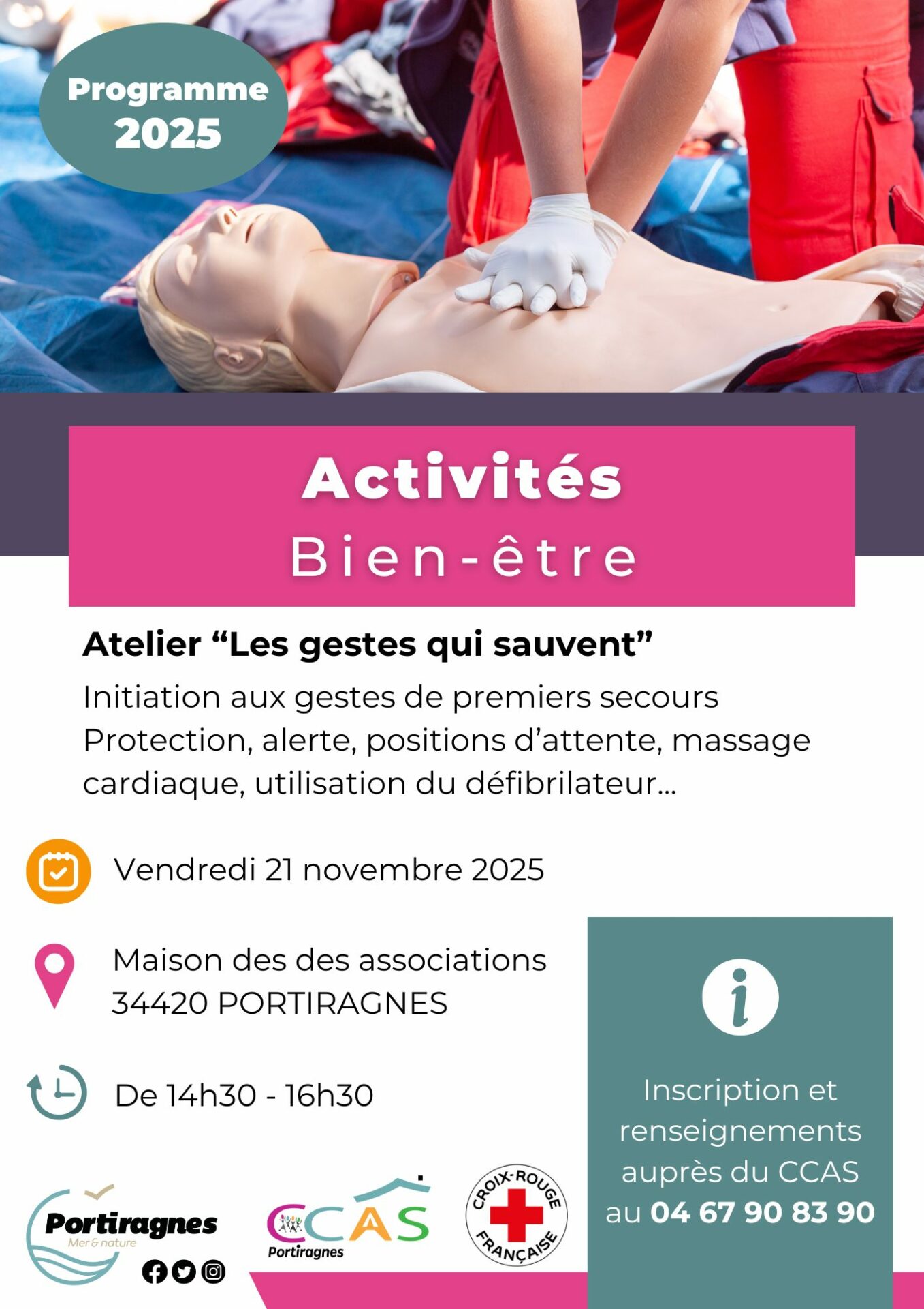 Le CCAS de Portiragnes, en partenariat avec la Croix-Rouge Française, vous propose un atelier d’initiation aux gestes de premiers secours.