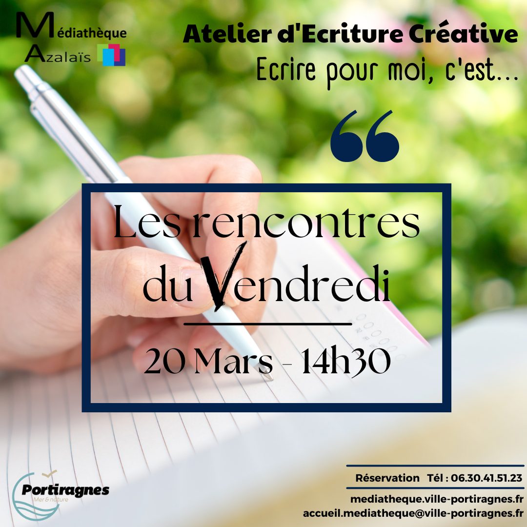 Médiathèque – Les rencontres du Vendredi – Atelier d’écriture créative « Écrire pour moi, c’est… »