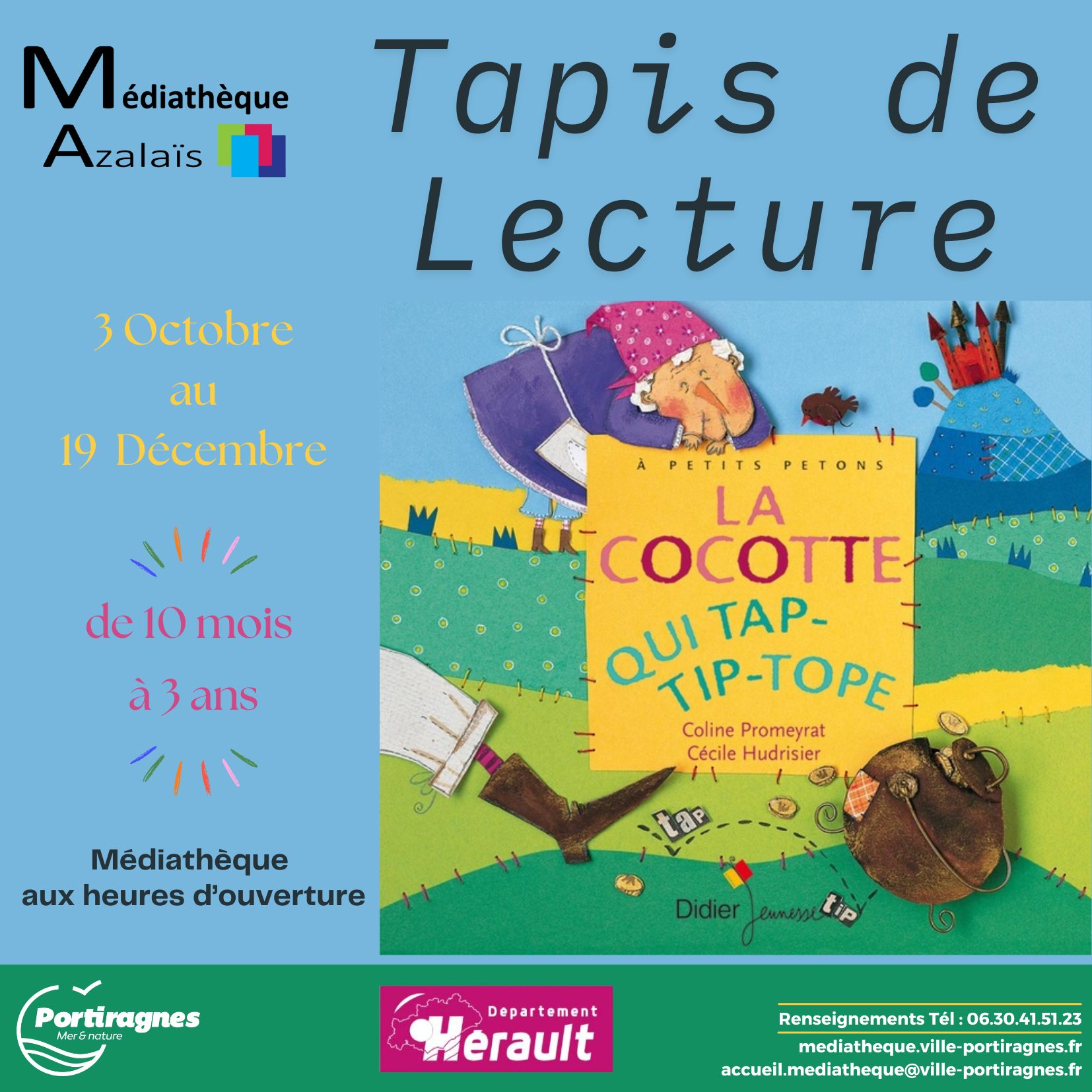 Tapis de lecture « La cocotte qui tip tap tope » du Vendredi 03 Octobre 2025 à 10h00 au Vendredi 19 Décembre 2025 à 18h30